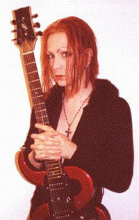 Zim Zum: It's a Norton guitar..I really pride myself on finding companies that are not the norm, they're not the mainstream, initially when I started working with Fernandez about 6 years ago they were a small company, almost no artist roster, very small, unknown, & the best thing about it was that they could actually do the things that I needed & they could get these things done in a relatively small period of time & it was creative, they were making quality instruments, so as Fernandez sorta grew into something alot bigger than that I started to search for something different, as soon as something gets big, I always look for something else...it's just kind of the way I do things & you can kind of pretty much parallel that to quite a few things I've done, but with Norton, I think I had just seen it in the very back pages of a guitar magazine & it was one of those really tiny & small adds in black & white, & it was the picture of a guitar, & it was one of the python guitars, that's the guitar I have in one of the pictures, so it was just the matter of making a phone call & sort of touching base with these guys & then when I found out it was literally a company of 3 guys I knew it was perfect, they sent me out one of the guitars & it was based on a design that I had never seen done in a guitar, it was completely outside the box & it's built on a mainframe, where just about everything is attached to a plate that's attached to the neck & there are 2 tubes that come out that are called the mainframe that everything attaches to, so you can, within a matter of seconds, you can move the pick-ups anywhere you want up & down the mainframe, you can take to pick-ups out, anything you really wanna do with the pick-ups & you can take the body off & change the body in a matter of minutes, so it's a completely inter-changable guitar for people who I guess work on a budget, it's kind of an interesting guitar too because you don't have to buy a new guitar if you get tired of the old style, you can just clamp a new body onto it. The sound is amazing too, because what you're dealing with is not an excessive amount of weight, it doesn't weigh anymore than a Les Paul, a Mahogany Les Paul, the Mahogany Les Paul that I have is about 10 pounds, it's a pretty weighty guitar, but with the metal that's on the guitar used for the mainframe, & it being bolted onto the neck, the sustain is amazing because you have continuity between wood & very sustained oriented material, like where the metal is on the guitar, & then when you combine that with different kinds of woods that are clamped onto the body & the right kind of pick-up or the right kind of tail piece on it, 3 tuners on each side, it evenly distributes the sustain from the top 3 strings to the lower 3 strings rather than having all 6 on one side which tend to leave more sustain to the higher strings because you have more string coming off of the high E & the B & the G, & wit having 3 on each side & a squared off headstock with a slight tilt back to it, the sustain is amazing, you can pretty much make the guitar whatever you want, because it's sort of a canvas that's there, move the pick-ups, change the pick-up, change the body, anything goes.